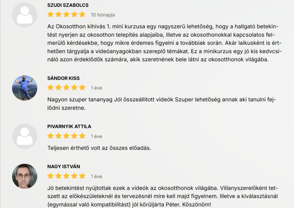 Tudjuk, hogy az alapok után azonnal jön a kérdés: “Hogyan tervezzem meg a szobákat?” Ha végigcsinálod az Okosotthon alapok 1. mini kurzust, INGYEN megkapod a 2. mini kurzust (“Okosotthon Tervezés Alapjai”), ahol már konkrét helyiségekre bontva haladunk tovább.
